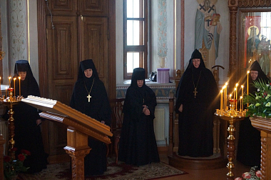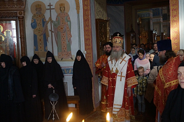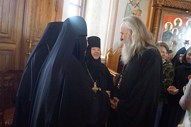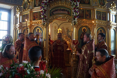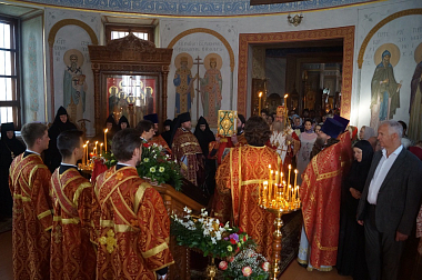 После традиционного молебна с водосвятием в честь покровителей обители была совершена праздничная Божественная литургия, за которой Его Высокопреосвященству сослужило монастырское духовенство и гости в священном сане.