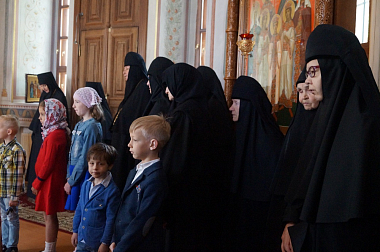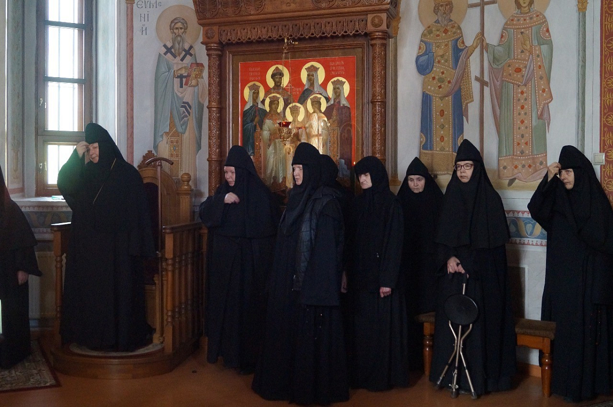 За богослужением молились настоятельница обители игумения Мария (Солодовникова), настоятельница Патриаршего подворья Пюхтицкого Успенского ставропигиального женского монастыря в г. Москве игумения Филарета (Смирнова), настоятельница Свято-Троицкого Александро-Невского ставропигиального женского монастыря с. Акатова игумения Антония (Минина), а также насельницы, прихожане, паломники и гости обители.