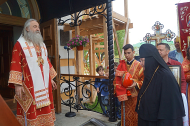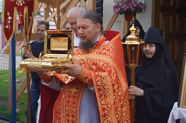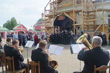 По окончании крестного хода Его Высокопреосвященство поздравил всех собравшихся с престольным праздником обители, произнес назидательное архипастырское слово в честь жертвенного подвига святых благоверных князей и страстотерпцев Бориса и Глеба и передал всем собравшимся благословение и поздравление от Святейшего Патриарха Московского и всея Руси Кирилла.