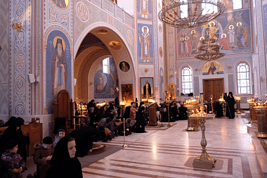 21 февраля 2018 года, в среду первой седмицы Великого поста, великое повечерие с чтением Великого покаянного канона прп. Андрея Критского в Покровском Хотькове ставропигиальном женском монастыре возглавил наместник Свято-Троицкой Сергиевой лавры, председатель Синодального отдела по монастырям и монашеству архиепископ Сергиево-Посадский Феогност.