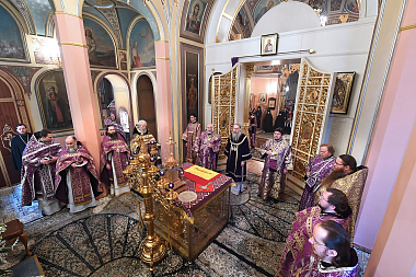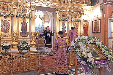 Затем в Покровском храме обители архиепископ Феогност вознес молитву у раки с мощами блаженной старицы Матроны.
