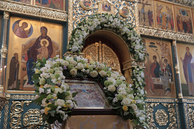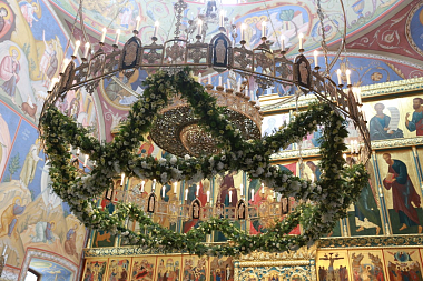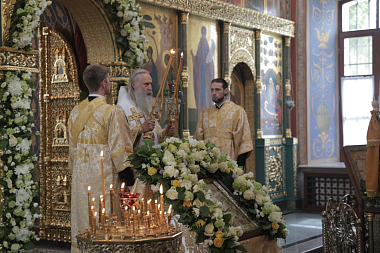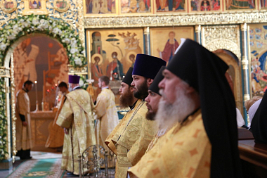 По окончании Литургии владыка Феогност обратился к собравшимся с архипастырским словом, посвященным празднику Всех святых, в земле Русской просиявших.