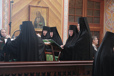 Во время праздничной трапезы для гостей обители были исполнены песни и инструментальные композиции в исполнении сестер монастыря, а также прозвучали поздравления в адрес игумении Елисаветы и насельниц в связи с 25-летним юбилеем возрождения обители.