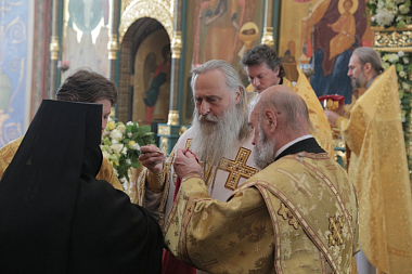 Его Высокопреосвященству сослужили: епископ Дмитровский Феофилакт, викарий Святейшего Патриарха Московского и всея Руси, наместник Андреевского ставропигиального мужского монастыря; братия Троице-Сергиевой лавры в священном сане, клирики Стефано-Махрищской обители.