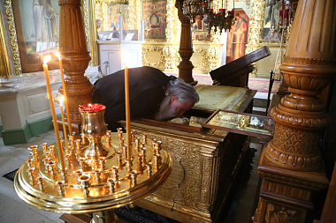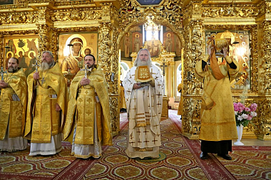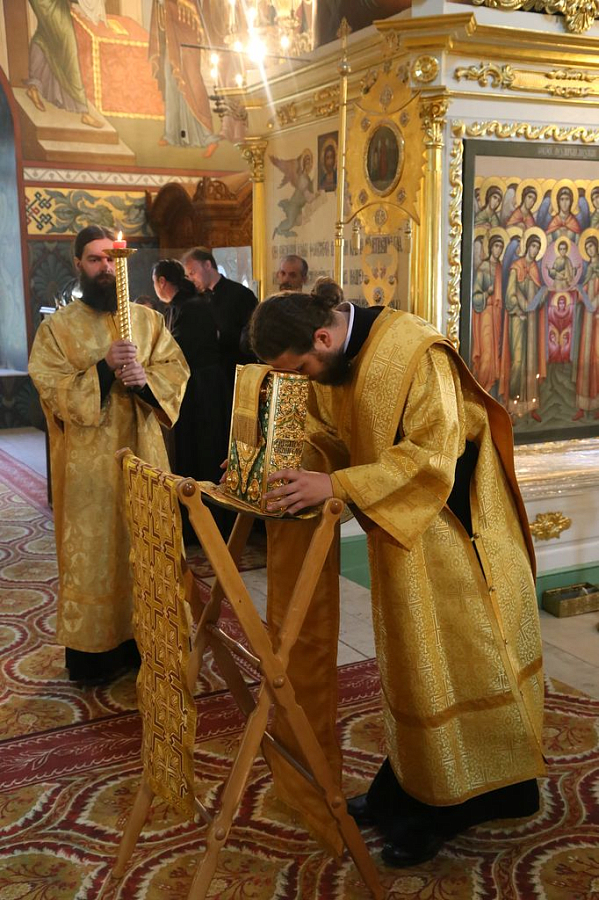 Сослужили архиепископу Феогносту наместник монастыря архимандрит Сергий (Воронков), братия обители в священном сане, протоиерей Владимир Митякин.