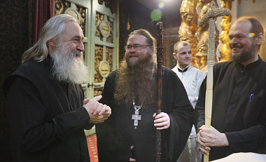 От лица Синодального отдела по монастырям и монашеству и всех монашествующих Высокопреосвященнейшего владыку поздравил епископ Солнечногорский Алексий.
