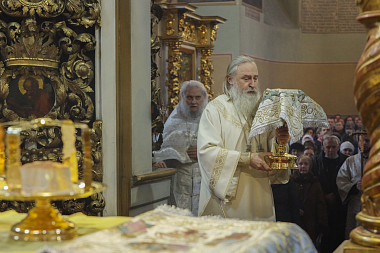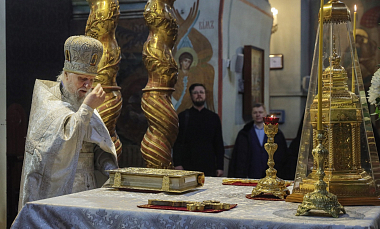 По окончании Литургии протопресвитер Владимир Диваков огласил поздравительный адрес Святейшего Патриарха Московского и всея Руси Кирилла, направленный архиепископу Феогносту по случаю дня его тезоименитства: