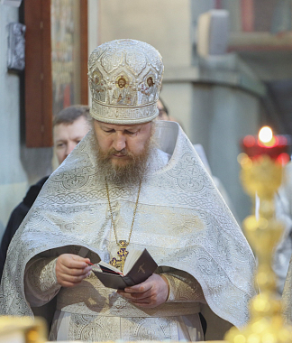 Его Высокопреосвященству сослужили: секретарь Патриарха Московского и всея Руси по г. Москве протопресвитер Владимир Диваков; заместитель председателя Синодального отдела по монастырям и монашеству архимандрит Стефан (Тараканов); наместник Саввино-Сторожевского ставропигиального мужского монастыря архимандрит Павел (Кривоногов); благочинный Патриарших подворий и ставропигиальных приходов вне города Москвы настоятель храма прп. Сергия Радонежского на Рязанке протоиерей Виктор Сандар; братия Донской обители в священном сане.