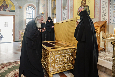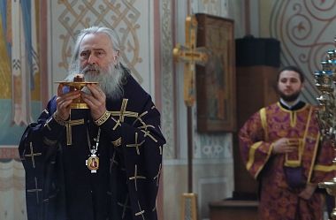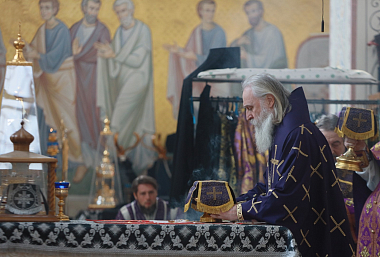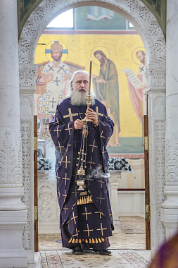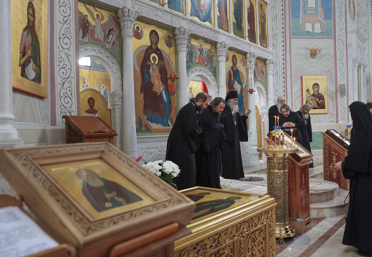 Его Высокопреосвященству сослужили духовник обители архимандрит Амвросий (Кравчук) и духовенство монастыря.