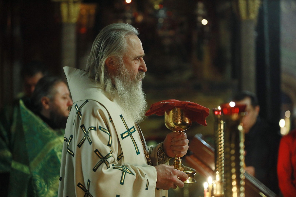 После сугубой ектении архиепископ Феогност вознес молитву об избавлении от вредоносного поветрия.