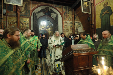 Его Высокопреосвященству сослужили наместник Саввино-Сторожевского монастыря архимандрита Павел (Кривоногов), братия обители и гости в священном сане.