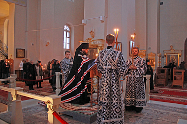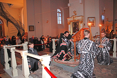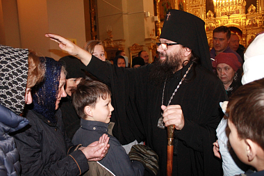 По окончании великого повечерия владыка Матфей преподал свое архипастырское благословение сестрам и прихожанам обители.