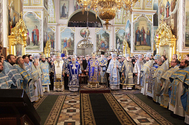 Его Высокопреосвященству сослужили председатель Синодального отдела по монастырям и монашеству, наместник Троице-Сергиевой лавры архиепископ Сергиево-Посадский Феогност, архиепископ Городницкий Александр, епископ Вознесенский и Первомайский Алексий и Собор духовенства.