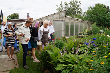 Настоятельница обители игумения Мария (Солодовникова) провела паломников по территории обители, рассказала об истории монастыря и жизни первых основательниц и насельниц обители.