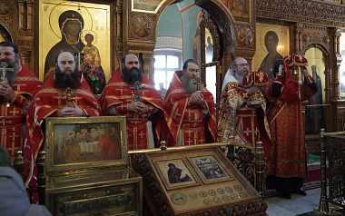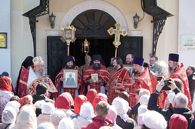 После Божественной литургии, которую возглавил архимандрит Мелхиседек, и крестного хода братия в священном сане, духовенство, сотрудники и прихожане Оптинского подворья и Покровского храма поздравили отца Мелхиседека с днем рождения и преподнесли в дар букет цветов.