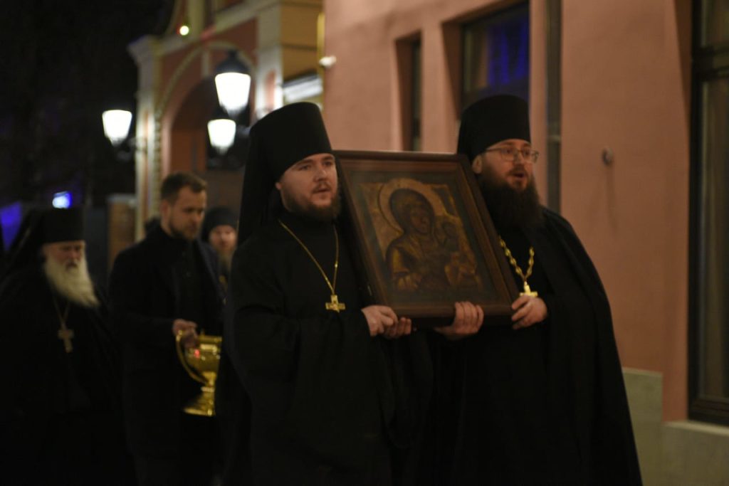 Первый крестный ход был совершен после вечернего богослужения 18 марта. Наместник с братией прошли по окружающим монастырь тротуарам с древней чтимой Влахернской иконой Богоматери. В крестных ходах принимает участие несколько насельников монастыря, далее он будет совершаться по внутренней территории.