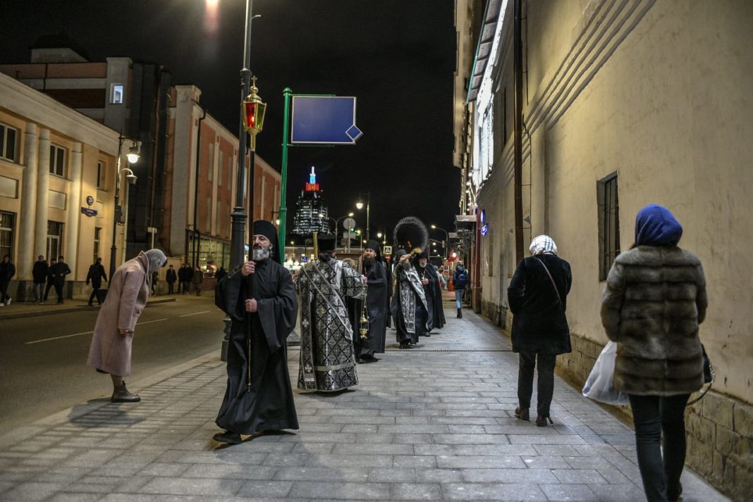 Учитывая посетившее Москву и ее жителей испытание, братия древнего столичного Высоко-Петровского ставропигиального мужского монастыря каждый вечер обходит его стены с молебным пением. Окропляя территорию обители и окружающие ее стены святой водой, монашествующие обращаются к Господу, Пресвятой Богородице и святителю Киевскому Петру, Московскому чудотворцу, о помощи и заступлении всем нуждающимся.