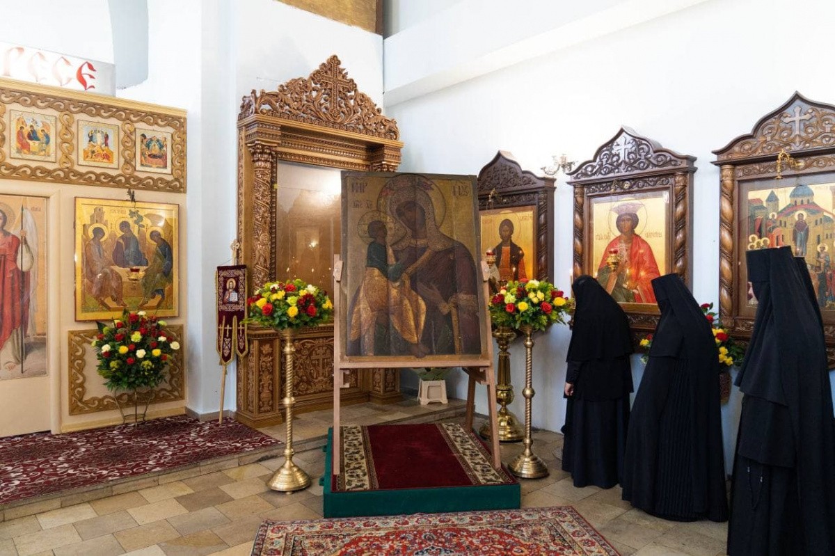 После Литургии перед Иерусалимской иконой Божией Матери было совершено славление.