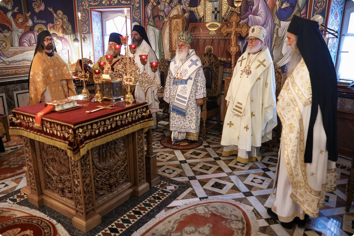 Утро 16 октября началось с совершения соборной архиерейской Литургии в храме равноапостольных Кирилла и Мефодия паломнического дома «Славянский», которую возглавил митрополит Петр в сослужении епископов Панкратия и Николая. За богослужением на заупокойной ектении были помянуты приснопамятный архимандрит Мефодий, трудами которого и был устроен сей храм, а также его родители – Кирилл и Слободка.