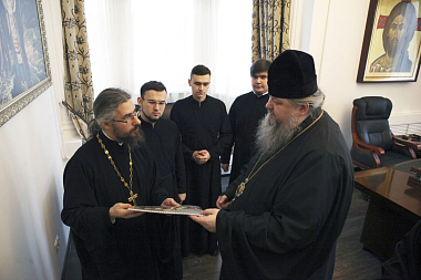 В завершение встречи владыка Корнилий обменялся с гостями подарками. Во встрече приняли участие студенты Сретенской духовной семинарии Антоний Осипов, Владислав Ратников и Петр Граматик.