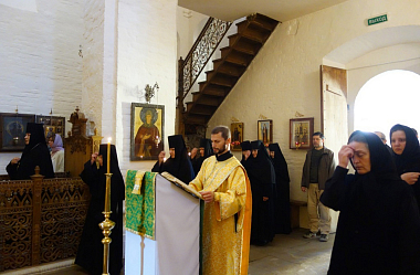 За богослужением молились настоятельница Богородице-Рождественского монастыря игумения Викторина (Перминова), казначея Иоанно-Предтеченского ставропигиального женского монастыря монахиня Анувия (Виноградова), зав. канцелярией Синодального отдела по монастырям и монашеству Г.В. Филиппова, главный редактор сайта СОММ «Монастырский вестник» Е.П. Орлова, сестры и прихожане обители.