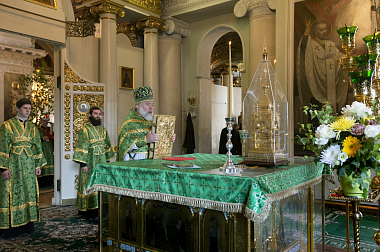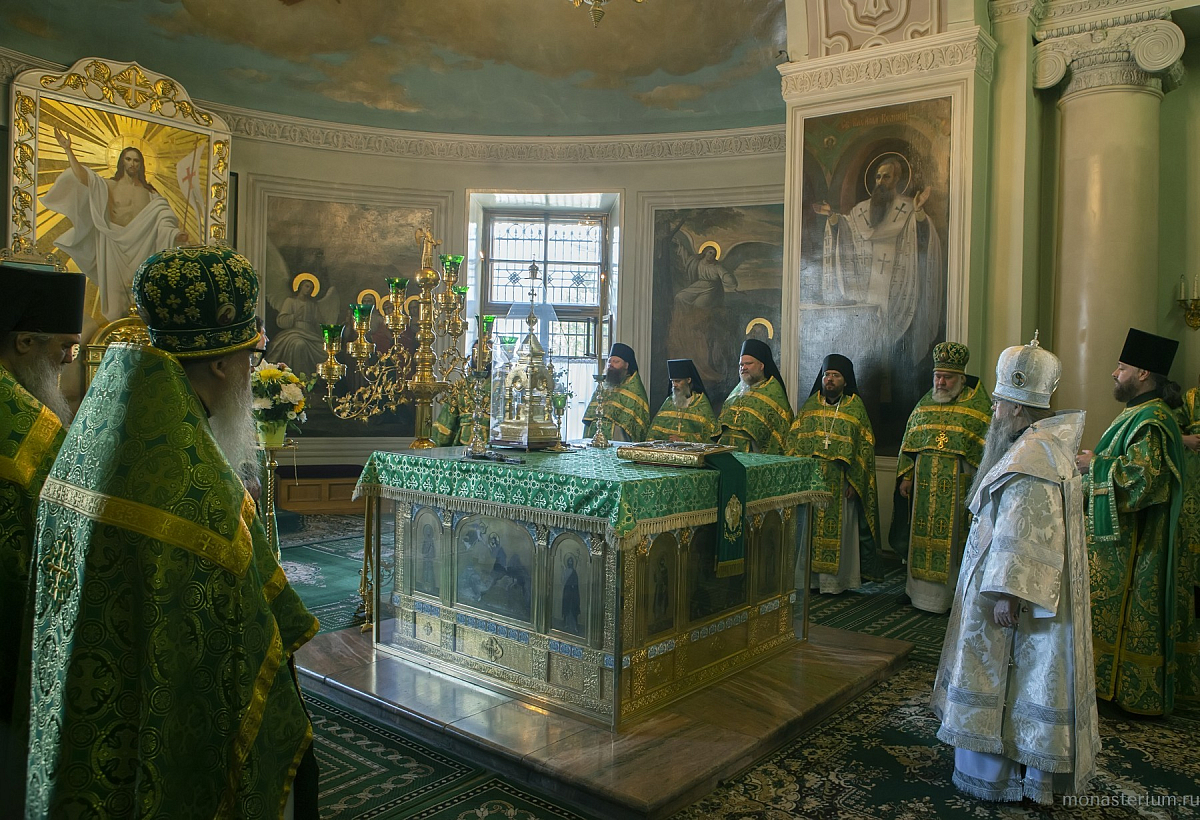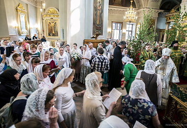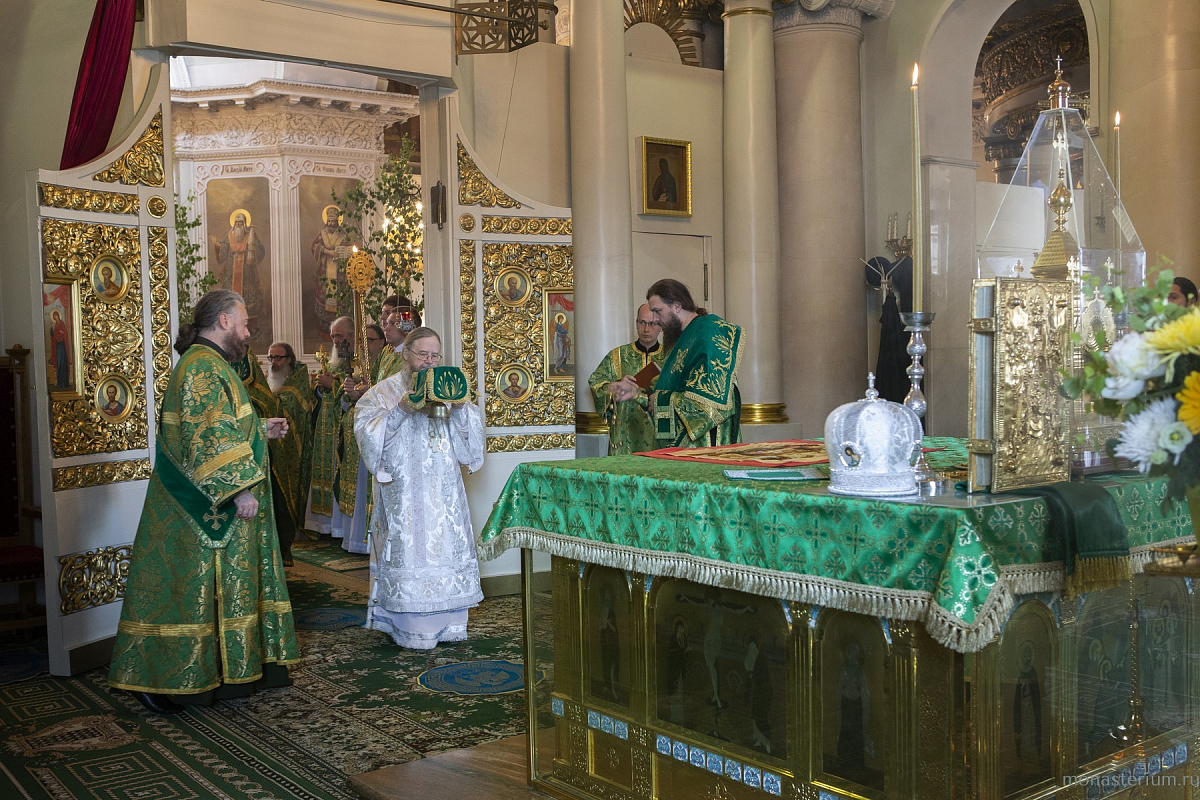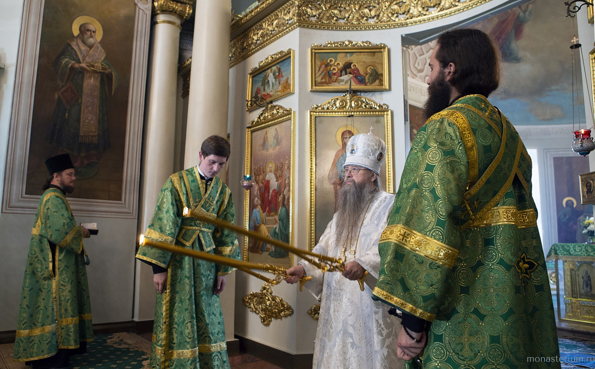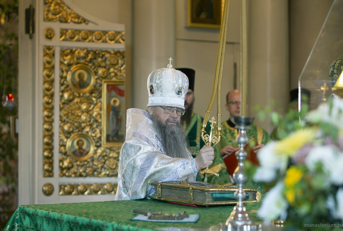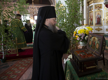 В Троицком соборе обители епископу Алексию сослужили настоятель Серафимо-Саровского мужского монастыря Воронежской митрополии игумен Дионисий (Шумилин) и братия Данилова монастыря в священном сане.