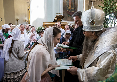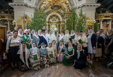 По окончании Литургии епископ Алексий отслужил благодарственный молебен по случаю окончания учебного года на регентско-певческих курсах, отметивших в нынешнем году 20-летний юбилей.