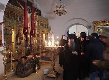 По прибытии в Зачатьевскую обитель Его Преосвященство поклонился святым мощам основательниц монастыря преподобных игумении Иулиании и монахини Евпраксии Московских и преподал архиерейское благословение пастве.