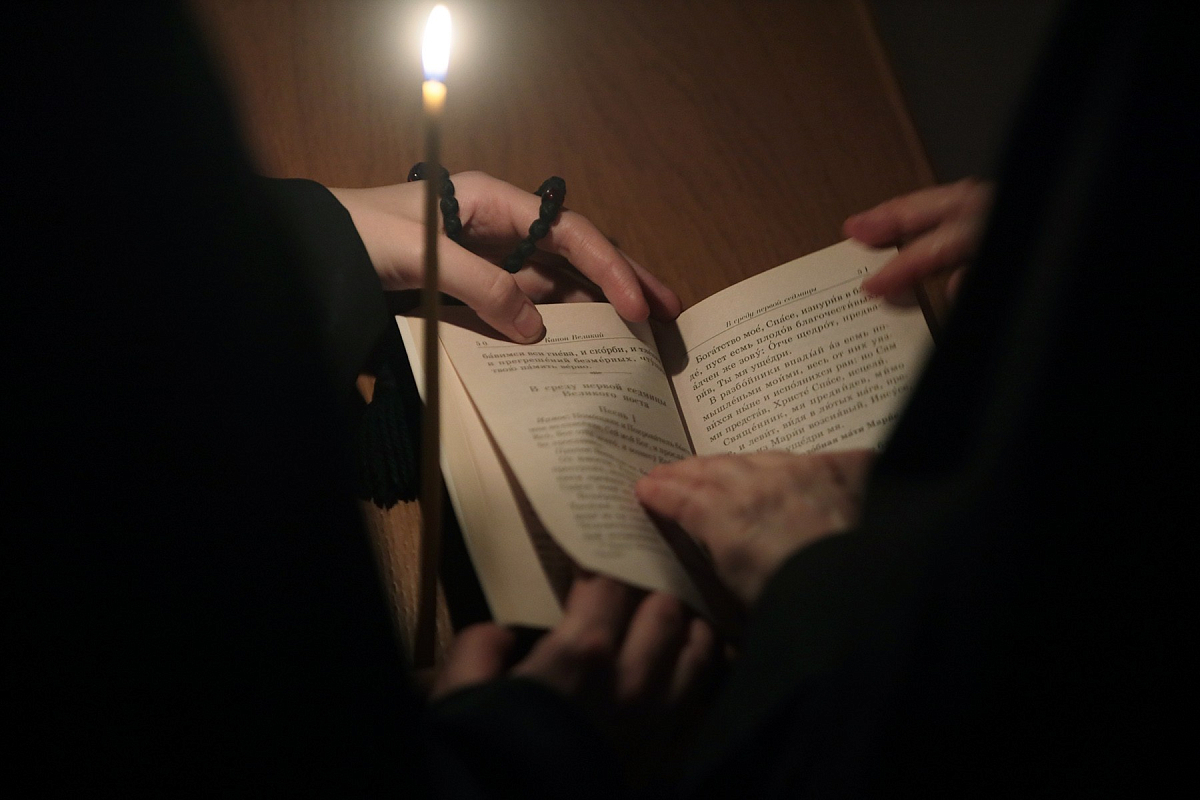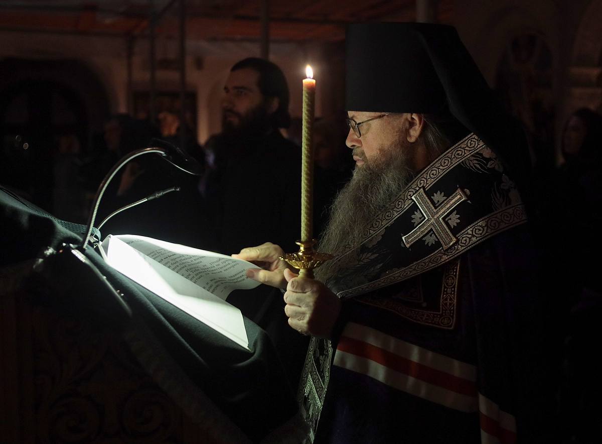В монастырском соборе Рождества Пресвятой Богородицы Преосвященнейший владыка совершил великое повечерие с чтением Великого покаянного канона прп. Андрея Критского.