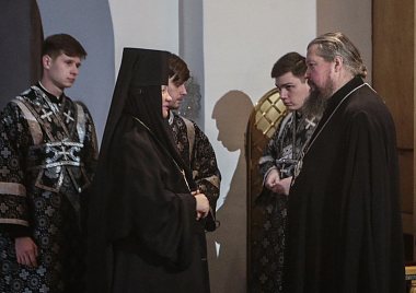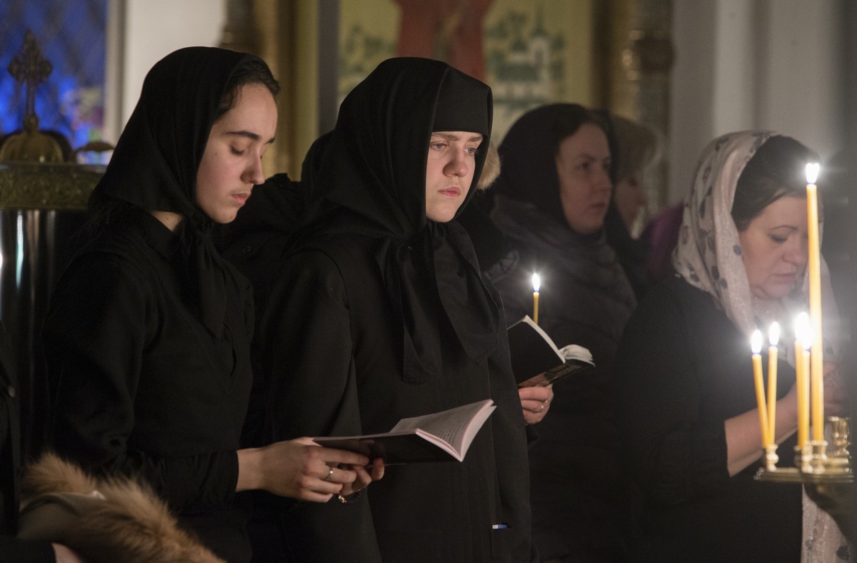 За богослужением молились заместитель председателя Синодального отдела по монастырям и монашеству, настоятельница Зачатьевского монастыря игумения Иулиания (Каледа), насельницы обители и многочисленные богомольцы и паломники, собравшиеся под своды соборного храма Рождества Пресвятой Богородицы ради сугубого покаянного моления, совершаемого в первые четыре дня благодатного Великого поста.