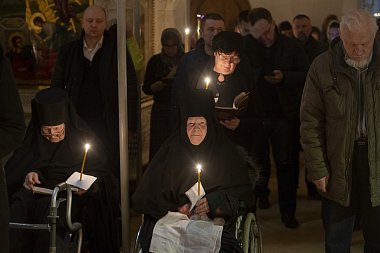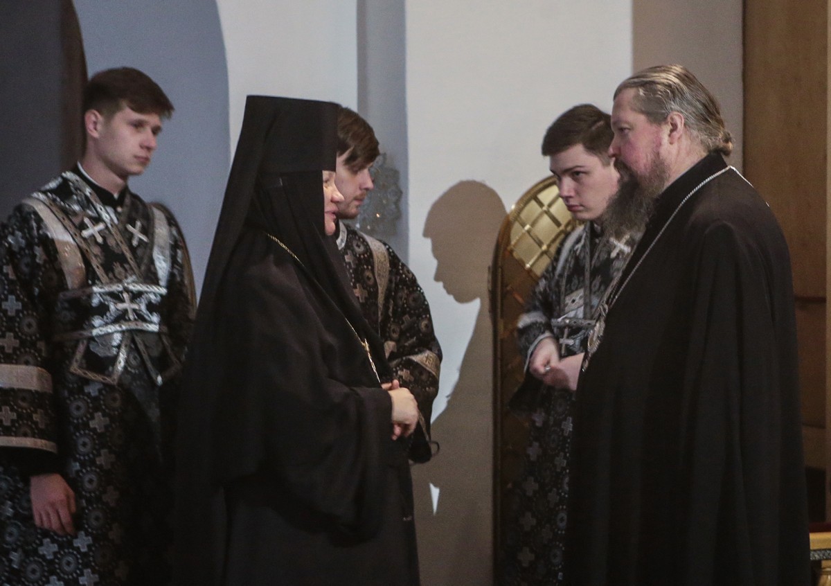 12 марта 2019 года, во вторник первой седмицы Великого поста, по благословению Святейшего Патриарха Московского и всея Руси Кирилла чтение 2-й части Великого покаянного канона прп. Андрея Критского в Зачатьевском ставропигиальном женском монастыре совершил викарий Его Святейшества, наместник Новоспасского ставропигиального мужского монастыря епископ Воскресенский Дионисий.