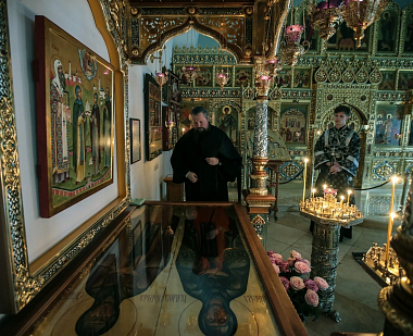 В завершение игумения Иулиания с сестрами выразили благодарность владыке Дионисию за совершенное богослужение и архипастырское слово и молитвенно пожелали помощи Божией в новом служении в должности наместника Новоспасского монастыря.