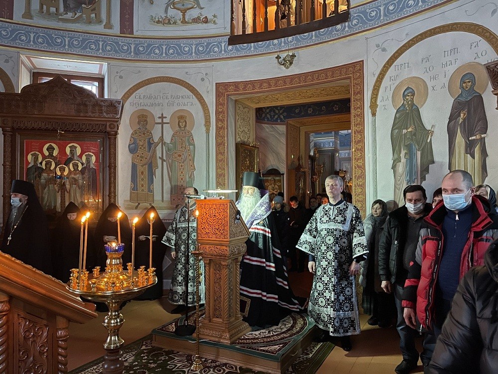 По окончании Литургии владыка Феофилакт обратился к настоятельнице обители игумении Марии с сестрами со словом поддержки и назидания. Архиерей поблагодарил сестер за труды и молитвы и пожелал благопоспешения Божия, как во дни Великого поста, так и во всей их монашеской жизни.