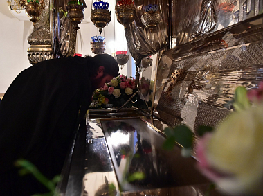 Настоятельница Покровского монастыря игумения Феофания (Мискина) встретила Его Преосвященство у ворот обители и в сопровождении сестер провела к мощам святой праведной блаженной Матроны Московской, а затем в храм Воскресения словущего.