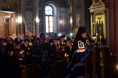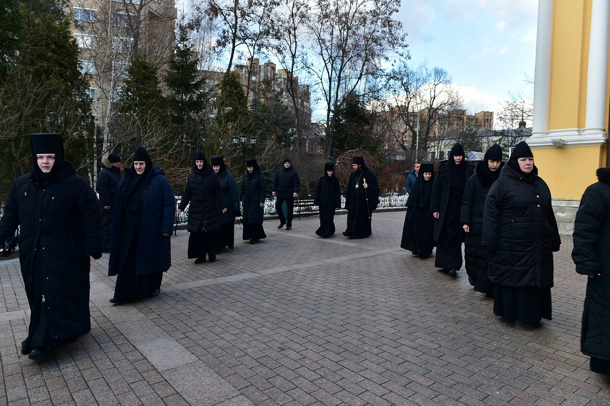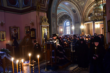 13 марта 2019 года, в среду первой седмицы Великого поста, чтение покаянного канона прп. Андрея Критского на великом повечерии в Покровском ставропигиальном женском монастыре совершил управляющий Северным и Северо-Западным викариатствами г. Москвы, наместник Донского ставропигиального мужского монастыря епископ Бронницкий Фома.