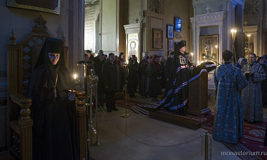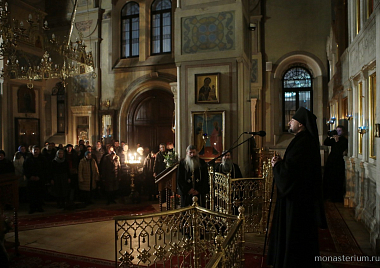 В богослужении приняли участие клирики монастыря: старший священник и духовник протоиерей Артемий Владимиров, протоиерей Евгений Каньшин, протоиерей Сергий Теплов, иерей Артемий Сахаров.