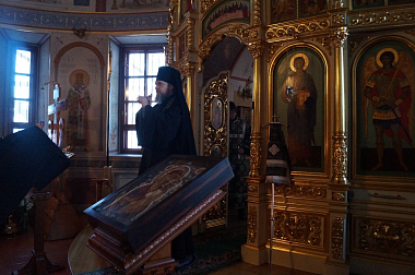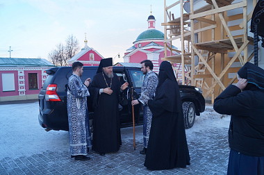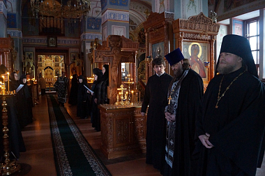 Его Преосвященству сослужили клирики монастыря.