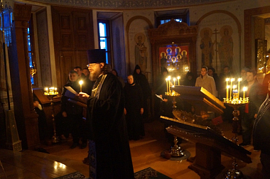 Великое повечерие было совершено в Троицком соборе обители.