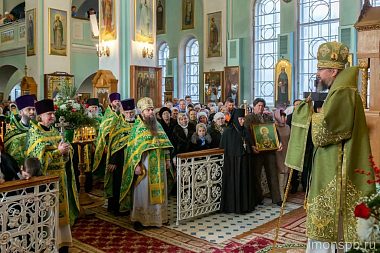 По окончании Божественной литургии епископ Вениамин вознес молитву святому праведному Иоанну Кронштадтскому и обратился к присутствовавшим с архипастырским словом.