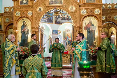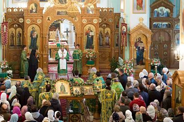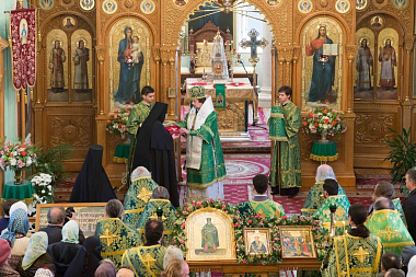 По заамвонной молитве епископ Маркелл совершил литию по жертвам авиакатастрофы в Египте, а затем отслужил молебен небесным покровителям обители: прп. Иоанну Рыльскому и св. прав. Иоанну Кронштадтскому.