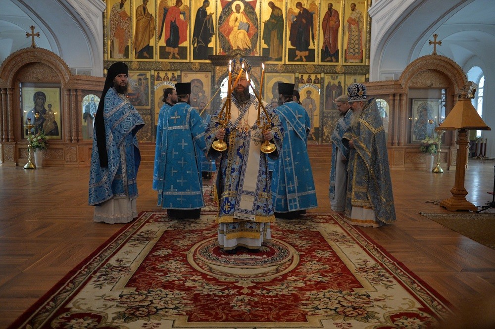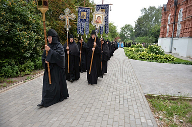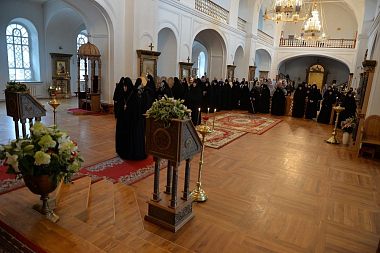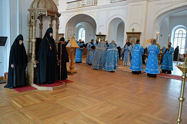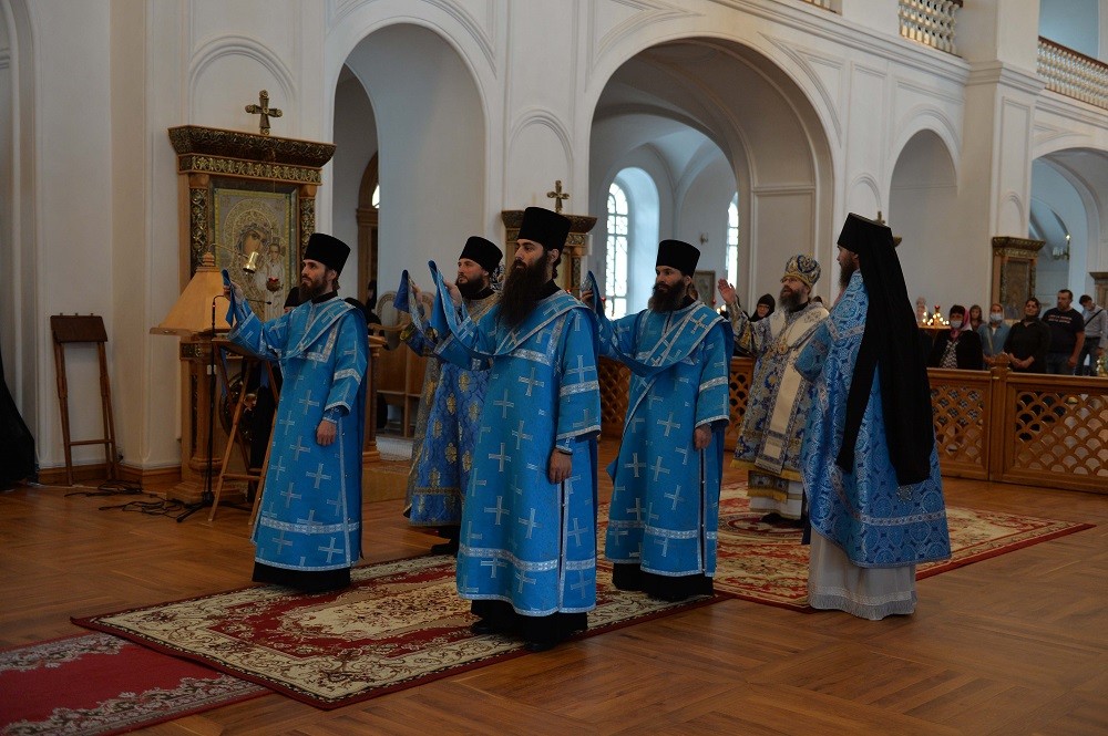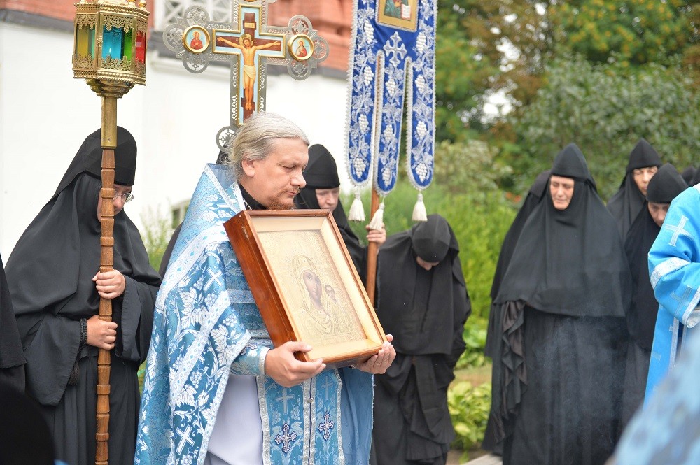 Накануне богослужение началось малой вечерней с пением акафиста чтимому образу Матери Божией и продолжилось всенощным бдением в Казанском соборе обители.