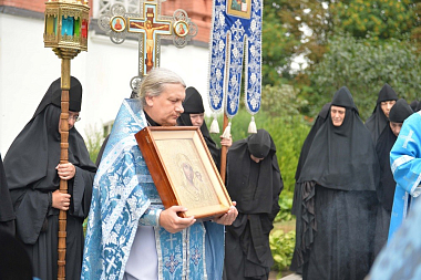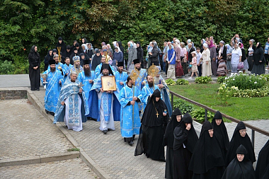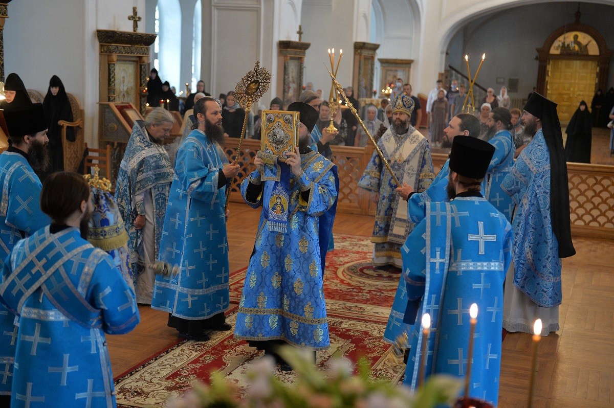 По окончании Литургии епископ Леонид поздравил настоятельницу Шамординского монастыря игумению Сергию (Щербакову) и сестер обители с престольным праздником и кратко напомнил историю явления иконы в Казани.