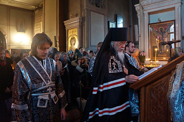 Владыка Пантелеимон совершил в монастырском храме Всех святых великое повечерие с чтением Великого покаянного канона прп. Андрея Критского.