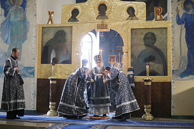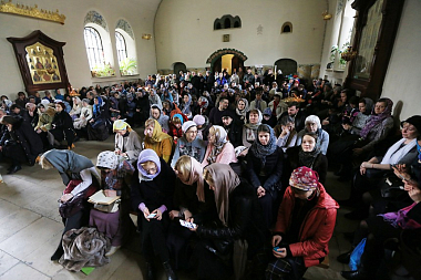 8 марта 2017 года Литургию Преждеосвященных Даров в Покровском храме ставропигиального женского монастыря Марфо-Мариинская обитель милосердия возглавил председатель Синодального отдела по церковной благотворительности и социальному служению епископ Орехово-Зуевский Пантелеимон. Его Преосвященству сослужили клирики монастыря.