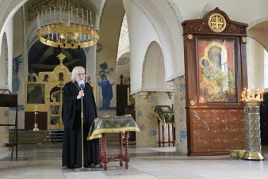 По окончании богослужения Его Преосвященство поздравил настоятельницу Марфо-Мариинской обители милосердия игумению Елисавету (Позднякову) с днем рождения. Затем состоялась встреча Владыки с друзьями «Милосердия», которая была посвящена служению женщин в Церкви.