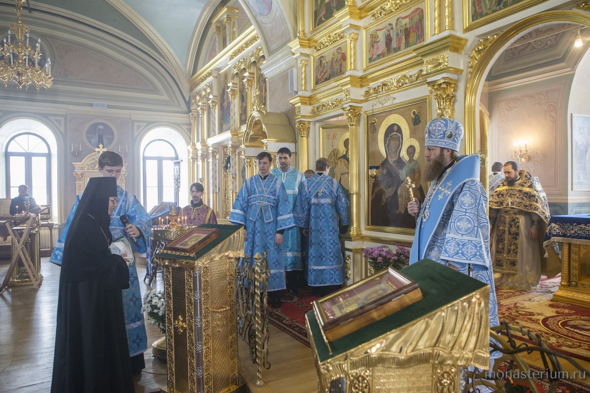 В этот день Божественную литургию свт. Иоанна Златоуста в Троицком храме обители возглавил епископ Воскресенский Савва, первый заместитель управляющего делами Московской Патриархии, викарий Московской епархии, управляющий Юго-Восточным викариатством столицы и викариатством Новых территорий, наместник Новоспасского ставропигиального мужского монастыря.