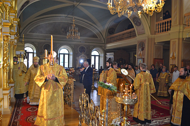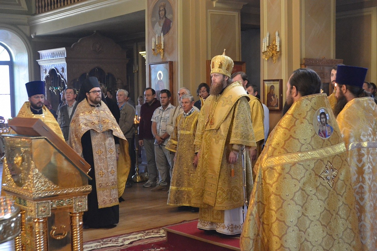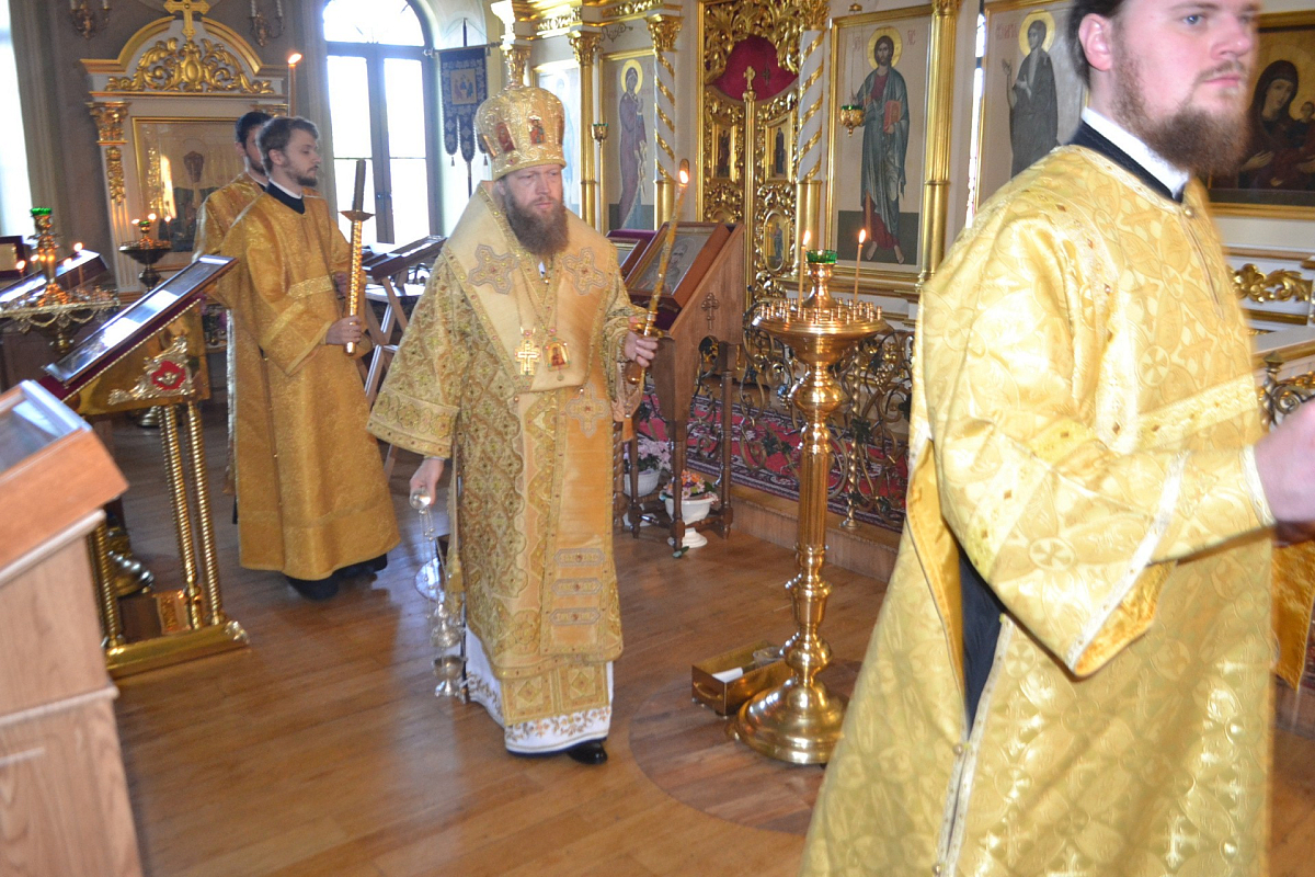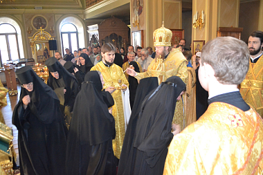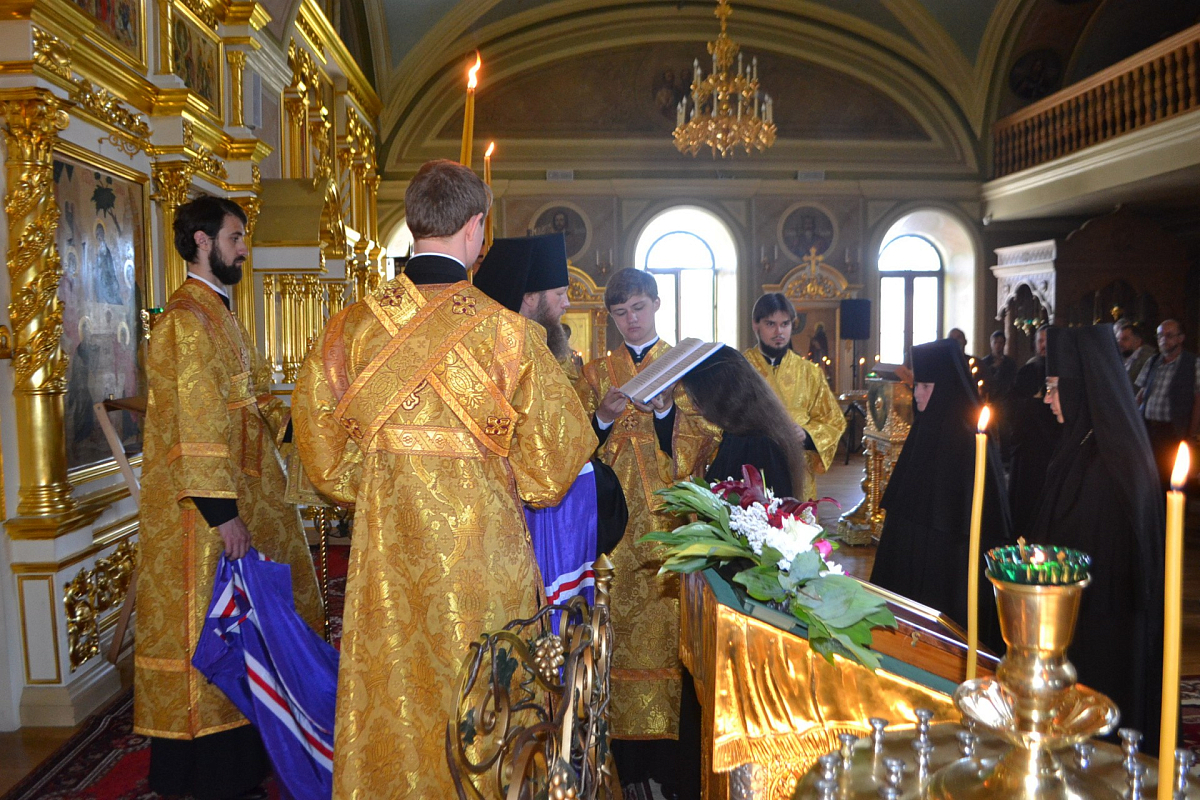 Его Преосвященству сослужили клирики монастыря.