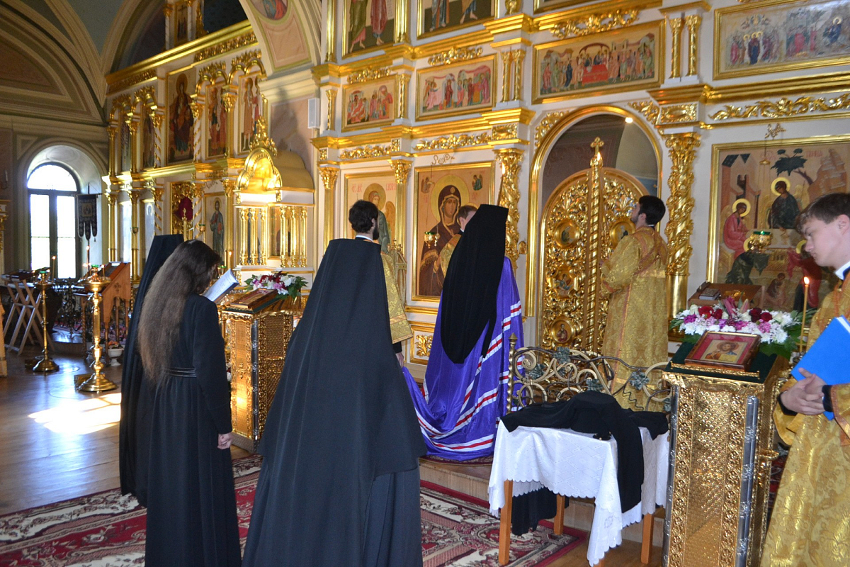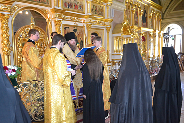 Перед началом всенощного бдения владыка Савва совершил иноческий постриг одной из насельниц обители. При постриге постриженнице было дано имя Бландина в честь мученицы Бландины Лионской, включенной в месяцеслов Русской Православной Церкви 9 марта 2017 года решением Священного Синода Русской Православной Церкви (журнал № 14) с определением дня памяти 2/15 июня.