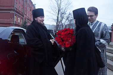 Его Преосвященство встречали руководитель Правового управления Московской Патриархии, настоятельница Алексеевского монастыря игумения Ксения (Чернега) с сестрами, старший священник и духовник обители протоиерей Артемий Владимиров, клирики монастыря.