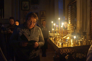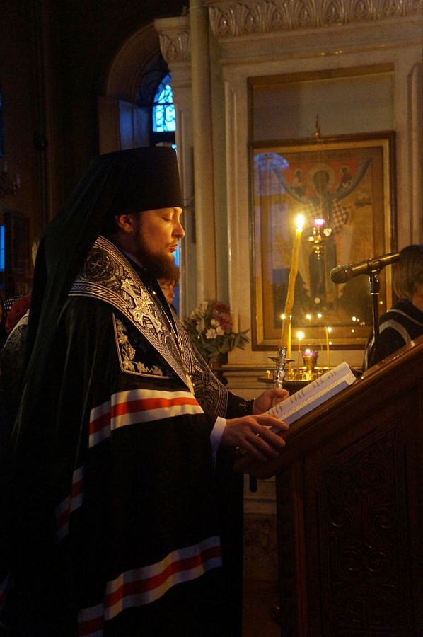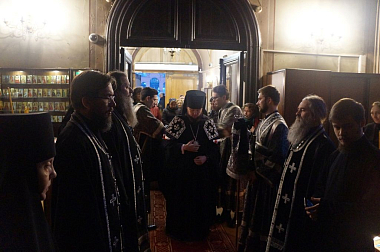 Владыка Серафим в монастырском храме Всех святых совершил великое повечерие с чтением Великого покаянного канона прп. Андрея Критского.